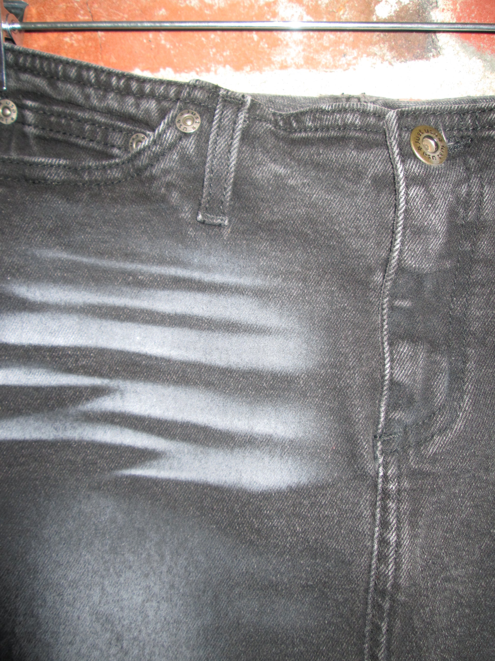 vintage Just USA black denim midi skirt. hits just above the knee. very office sirennnn. no flaws!